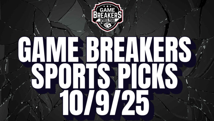 PicksGame Breakers Sports PicksSportsMLBNFLSoccer Game Breakers Sports Picks – 10/9/25 By Dan Bakley - October 9, 2025 FacebookTwitter Thanks for checking out Game Breakers Sports Picks for October 9, 2025. For more picks follow Dan here! Today’s Picks